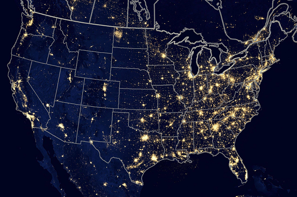 This night lights map of the USA, overlaid with state boundaries, is particularly helpful for understanding this crucial point. When things go bad, you want to be as far away from the high-density lighted areas as possible: