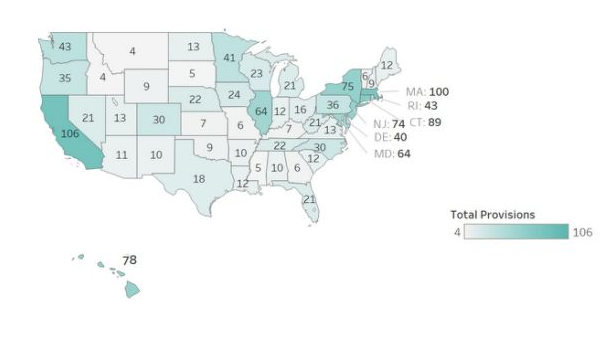 The states with the most restrictive gun laws are shown in the following map: